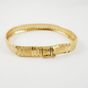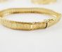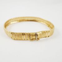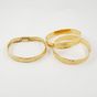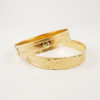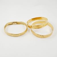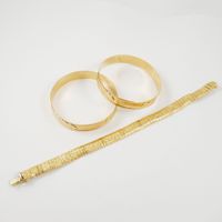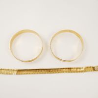 Trois bracelets en or 750 mil. dont deux bracelets jonc (Diamètre : 6,2 cm) et un bracelet souple (longueur : 19 cm) (Chocs, déformations). 55,1 g.