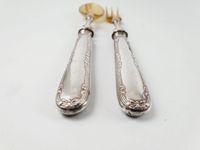 PIERRE BEZON, Années 1910 : couvert à salade à manches en argent 950 mil. à décor de filets rubanés et agrafes de feuilles d’acanthe, les hauts en corne blonde. Poinçons Minerve 1er titre de 1838, tête de sanglier et de Maître PB roue d’engrenage (insculpé en 1913). Poids brut : 133.5 g. TBE de fraicheur. Non chiffré. L. 29 et 28.5 cm.