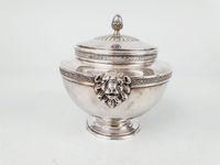 PUIFORCAT, vers 1910 : service à thé-café 4 pièces en argent 950 mil. modèle ovoïde sur piédouche rond à frises de grecques et fleurettes, les becs verseurs à tête de lion, le sucrier à masques de lion, les couvercles à graine sur tertre de godrons rayonnants, les anses en ébène mouluré à agrafes de feuilles d’eau et coquille. Signé Puiforcat Paris. Minerve 1er titre de 1838 et poinçon de Maître EP au canif. Poids brut : 1976.4 g. H. de la théière : 13 cm, cafetière : 17.5 cm, sucrier : 12.3 cm, pot à lait : 12.5 cm. TBE. Non chiffré.