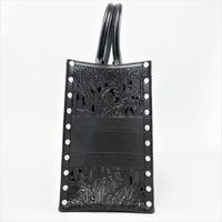 CHRISTIAN DIOR. Sac cabas « Dior Book Tote » en cuir noir à décor floral ajouré, signature CHRISTIAN DIOR à l’avant, bordé de clous argentés, double poignée. H : 27 x L : 35 x P : 17cm environ. Boîte. Etat neuf. Le Dior Book Tote, une création originale signée Maria Grazia Chiuri, Directrice Artistique de la maison Dior.