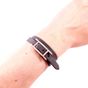 HERMES Paris Made in France - Bracelet « Behapi » double tour réversible en Veau Swift étoupe et violine, fermoir boucle « Hapi » en métal argenté palladié. (Tour de poignet : de 15,5 à 16,5cm environ). (Usures).