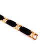 HERMES Paris Made in France - Bracelet « Place Beauvau » en cuir de Lézard vert foncé à surpiqûres Sellier alterné de maillons croisés en métal doré. (Longueur : 18cm environ). (Usures).