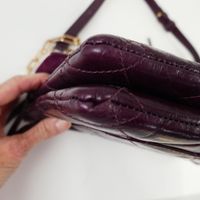 VANESSA BRUNO. Sac « Moon » en cuir craquelé matelassé bordeaux. Fermoir coulissant en métal doré signé sur rabat, anse réglable en cuir et chaîne. Garniture en métal doré. Intérieur en textile beige à 2 compartiments, et 2 poches dont 1 zippée. 1 poche extérieure arrière fermeture pression. H : 21 x L : 28 x P : 5cm environ. Bon état, quelques traces.