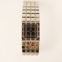 Bracelet-montre de dame CHOPARD « Ice Cube » en acier, boîtier carré, cadran argenté muet, mouvement à quartz, bracelet et boucle déployante papillon signée en acier, signé et numéroté (dimensions : 22 x 22 mm environ) (longueur : 18 cm environ).