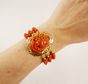 Bracelet ruban PEZZO UNICO en or 750 mil et perles de corail probablement teintées rouge, le fermoir orné d’un médaillon ovale, polylobé, ajouré, serti d’un camée de corail à profil féminin et de diamants brillantés en serti clos (0,02 carat chacun), signé (longueur : 20 cm environ, largeur : 21 mm, dimensions du médaillon : 42 x 35 mm environ) (petites usures et salissures). 44,5 g. brut