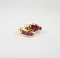 Paire de boucles d’oreilles GUY LAROCHE en or 750 mil ornées d’une ligne de rubis calibrés en légère chute (hauteur : 16 mm environ) (système à revoir). 4,9 g. brut