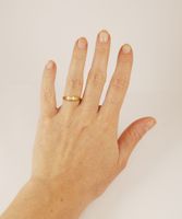 Solitaire GAY FRERES en or 750 mil orné d’un diamant brillanté de 0,12 carat environ en serti clos, poinçon Gay Frères (TDD : 53) (petits manques de matière). 3, 9 g. brut