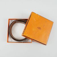 HERMES Paris Made in France. Cuir de ceinture réversible en Veau noir et Veau Togo gold. Année 2014. Marquage « S » de Soldes. Largeur : 32mm. Taille : 75-80cm environ. Avec boîte usée. En l’état.