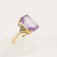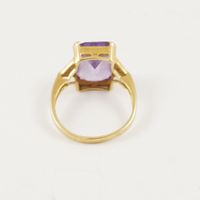 Bagiue en or 750 mil ornée d'une améthyste rectan