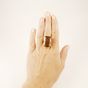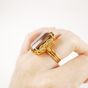 Bague en or 750 mil centrée d’un important quartz fumé rectangulaire à pans coupés, la corbeille à motifs torsadés entrelacés ajourés. (TDD : 56 ; Dimensions chaton : 2,8x1,7cm). (Traces de mise à taille, égrisures). 17,2 g. brut