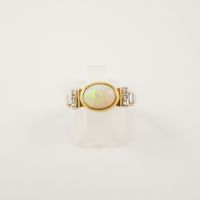 Bague jonc 2 ors 750 mil centrée d’une opale caboc