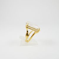 Bague LALIQUE Collection « Aréthuse » en or 375 mil à chaton carré retenant, en serti griffes, un cristal blanc à décor d’un masque de femme. Signée et numérotée. (TDD : 55 ; Dimensions chaton : 1,9x1,9cm). (Egrisures, petit éclat). 8,9 g. brut