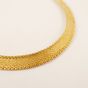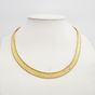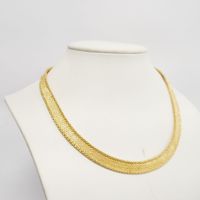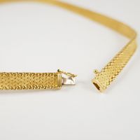 Collier ruban en or 750 mil à maille Polonaise en légère chute partiellement écrasée et satinée, fermoir à cliquet et huit de sécurité. Travail français des années 1960. (Tour de cou : 46cm ; Largeur maille : de 0,7 à 1cm environ). (Légères déformations). 66,5 g.