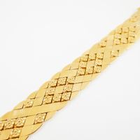 Bracelet ruban souple en or 750 mil. à maillons losangiques dont certains ponctués de fleurettes ciselées, fermoir cliquet avec huit de sécurité. Travail italien des années 50-60. (Longueur : 19 cm environ). 39,2 g.