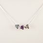 Collier GUERIN « Alisma » en or gris 375 mil. sertie d’une topaze bleue, d’une améthyste et d’une prasiolite. Signé. (Longueur : 42,5 cm). 2,3 g. brut
