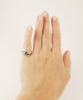 Bague jonc en or gris 750 mil centrée d’un saphir taille poire en serti clos, rehaussée de saphirs ronds et diamants taille 8/8. (TDD : 51 ; Largeur : 0.8mm). 4,1 g. brut