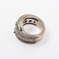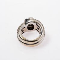 Bague en or gris 750 millièmes figurant deux serpents enroulés, le centre pavé de diamants rondsde taille brillant et de deux diamants navettes. (Usures). Tour de doigt : 53. Poids brut : 18,3 g