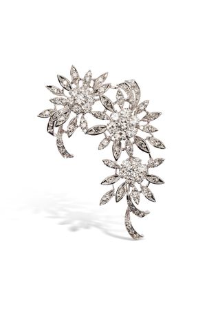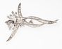 Clip de revers en platine 850 millièmes et or gris 750 millièmes à décor de feuillages orné de diamants ronds de taille brillant. (Manques à un diamant). Hauteur : 5,5 cm. Poids brut : 13,8 g