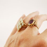 2 bagues en or 750 mil (pierres décoratives vertes, améthyste) (TDD : 55 et 56) (égrisures). 8 g. brut.