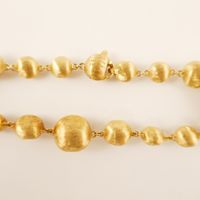 Bracelet MARCO BICEGO Collection Afrique composé de chutes de boules irrégulières (diamètres : 5,2 à 9,8 mm environ) en or 750 mil strié à effet satiné (longueur : 18,5 cm environ) (traces d’oxydation). Signé. 10,4 g.