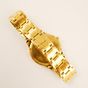 E) Art. 524 bis du CGI al. c : Bracelet-montre d’homme LORENZ en or 750 mil, boîtier rond, cadran noir à chiffres arabes et index bâtons dorés, guichet jour et date à 3 H, mouvement à quartz, sur bracelet articulé en or 750 mil à boucle déployante papillon (diamètre du boîtier : 36 mm, longueur du bracelet : 18,5 cm environ) (verre rayé, chocs). 92,4 g. brut.