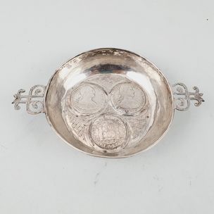 IRAN, fin du XXe- début du XXIe siècle : Petite tourterelle en argent 875 mil. Le plumage à fine ciselure. Les yeux en verre bleu. Travail artisanal. Poinçons et titrage 84 indiqué. Cygne français. Poids brut : 143.2 g. Dim. 8.3 x 13.5 cm.