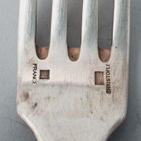 Petite pince à sucre vintage « LE CRABE » mécanique en métal argenté. Travail français des années 1960. H. 12.5 cm. + lot de couverts dépareillés du XXe siècle en métal argenté : 5 grandes fourchettes et 2 petites cuillers uniplat CLUNY (poinçon de fabricant post 1983), 1 couvert bébé de la maison PRUDHOMME des années 1930, 1 grande cuiller et 4 grandes fourchettes désargentées. Rayures et usures d’usage.