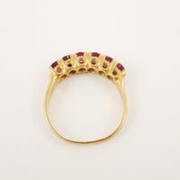 Bague jarretière en or 750 mil. sertie de rubis ronds. (TDD : 57,5) (Monture légèrement déformée). 4,7 g. brut.