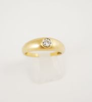 Bague jonc en or 750 mil. centrée d’un diamant taille brillant de 0,10 carat environ en serti clos. (TDD : 60). 4,4 g. brut.