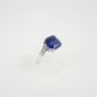 Bague MAUBOUSSIN « Môme, je t’aime » en or gris 750 mil. centrée d’une cyanite taille coussin en serti double griffes de 3 carats environ, épaulée de diamants brillantés. Signée et numérotée. (TDD : 54). 4,6 g. brut