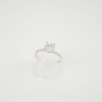 Bague solitaire en or gris 750 mil. ornée d’un diamant taille brillant de 1 carat environ en serti griffes épaulé de diamants brillantés. (TDD : 53). On y joint un pli LFG du 23/06/2020 précisant Masse : 1,05 ct- Couleur : K - Pureté : P1- Fluorescence : Moyenne – Dimensions : 6,31 x 6,39 x 4,08 mm. 2,5 g. brut.