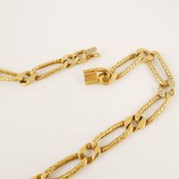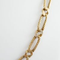 Collier à maille cheval texturé en or 750 mil. rehaussé sur 4 maillons de diamants 8/8, fermoir à cliquet et huit de sécurité. (Longueur : 46 cm environ). 49,9 g. brut.