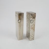 Deux briquets DUNHILL en métal argenté rainuré et texturé. Signés. (Dimensions : 6,4x2,4 cm environ)