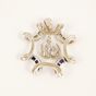 Pendentif en or gris 750 mil. retenant l’inscription du nom d’Allah dans un entourage de volutes (pierres imitation). (Hauteur : 3,8 cm environ). 10,9 g. brut.