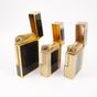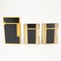 Trois briquets S.T DUPONT en métal doré rainuré et laque de Chine noire. Signés et numérotés. (Légères rayures)