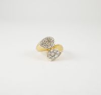 Bague croisée MAUBOUSSIN en or 750 mil et platine 950 mil, le corps godronné, les extrémités piriformes pavées de diamants taille brillant. Signée « Mauboussin Paris » et numérotée. (TDD : 44). (Petits manques de matière). 6,3 g. brut