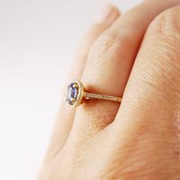 Bague en or 750 mil centrée d’un saphir ovale, ent