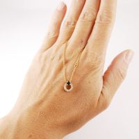 Collier en or 750 mil à fine maille forçat limée retenant un pendentif circulaire en or 750 mil serti d’un saphir et diamants taille brillant. Travail français. (Longueur : 41cm). 2,9 g. brut