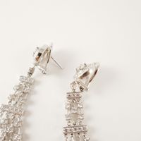 Demi-parure en or gris 750 mil comprenant un Pendentif et une Paire de pendants d’oreilles à motifs de pampilles, sertis de pierres imitation incolores. Systèmes pour oreilles percées et raquettes. (Longueur : 8,5cm). (Une tige accidentée à refixer et une tige déformée). 25,6 g. brut