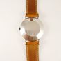 * Montre-bracelet d’homme JAEGER LECOULTRE en acier, boîtier rond, lunette lisse, anses goutte d’eau, cadran argenté à chiffres arabes et index épis appliqués, chemin de fer pour les minutes, aiguilles dauphine et trotteuse centrale, fond clippé, mouvement mécanique (calibre P478), sur bracelet cuir marron usé et boucle ardillon en métal blanc non d’origine. Cadran, boîte et mouvement signés. Numérotée. Sans écrin ni papiers. (Diamètre boîtier : 35mm). (Cadran taché, quelques oxydations).