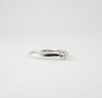 Solitaire en or gris 750 mil orné d’un diamant taille brillant de 0.20ct environ en serti griffes. (TDD : 54). 2,1 g. brut On y un écrin de la Maison Didier GUERIN (non d’origine).