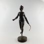D'après Jean Antoine HOUDON (1741-1828) « Diane chasseresse » Epreuve en bronze à patine brun vert, signée sur la base circulaire. Hauteur : 60 cm ; largeur : 30 cm ; profondeur : 25 cm. (Flèche manquante, arc restauré avec des éléments non d’origine, traces de restauration au niveau des bras, usure d’usage).