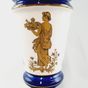 Deux pieds de lampes vintage : -Manufacture VAL SAINT LAMBERT, pied de lampe en cristal mouvementé, signé sous la base, travail des années 1970, monté à l’électricité (hauteur : 27 cm). -Vase balustre en porcelaine à décor de figures à l’Antique dorées sur fond blanc, bleu et or, garniture en laiton, montée à l’électricité (hauteur : 35 cm).