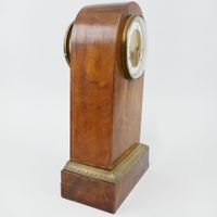 Pendule borne en acajou et placage d’acajou, cadran rond émaillé blanc à chiffres romains et bronze doré à motif écaille de poisson signé « Cronier Aîné, place des trois Maries, n°6 à Paris » (partiellement effacé), base rectangulaire soulignée d’une frise en laiton doré à motif de feuilles d’acanthes. XIXème siècle. Dimensions : 44 x 24 x 13,5 cm. (Sans clef, ni balancier) (Fentes, accidents et manques).