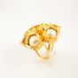 Bague de cocktail RALPH LAUREN collection « Flower » en métal doré rehaussée de perles imitations. Signée. (TDD : 52). (Avec housse et écrin).
