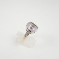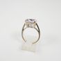 Bague MAUBOUSSIN « Gueule d’Amour » en or gris 750 mil. centrée d’une améthyste taille coussin épaulée de diamants brillantés. Signée et numérotée. (TDD : 57). (Egrisures, usures). 6.8 g. brut