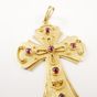 Pendentif « Croix » en or 750 mil. partiellement amati à décor de fils torsadés et rehaussée de pierres fines roses. (Hauteur : 5,8 cm environ). 14,5 g. brut