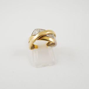 Solitaire en or gris 750 mil orné d’un diamant brillanté de 1,30 ct environ épaulé de diamants trapèze (TDD : 61,5). 4,8 g. brut.