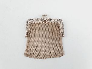 Petite bourse dite aumonière vers 1900 en argent à