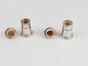 CHRISTOFLE, CLUNY, XXe siècle, années 60-80 : petit saleron et petit poivrier en métal argenté modèle dôme tubulaire à fermeture baïonnette, la base à pans. Signés. Poinçons ante 1983. Boite Christofle défraichie avec 2 petites housses tissu d’origine. H. 7,3 cm. Base : 3,5 cm. Légères rayures. TBE général. Le modèle reprend la forme des fameux saupoudroirs utilisés sous Louis XIV.